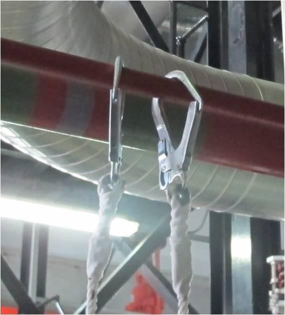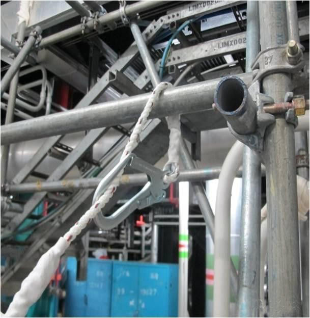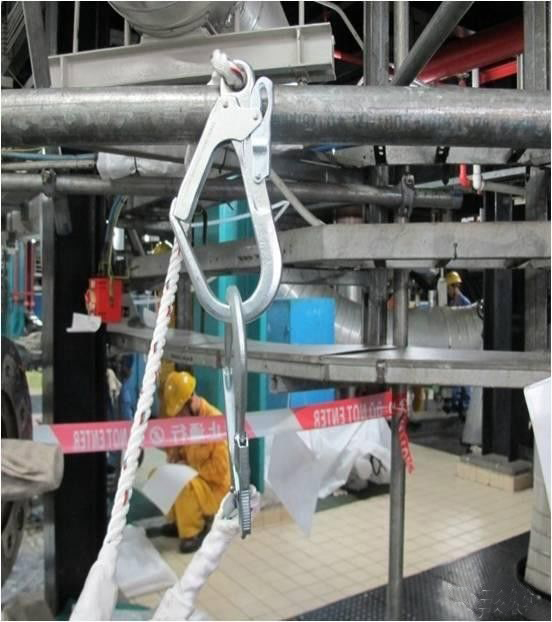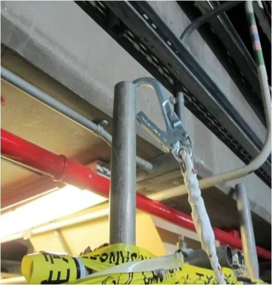 1、安全帶掛在儀控管線、消防管線、窗框、銹蝕支架等不承重的部件上。