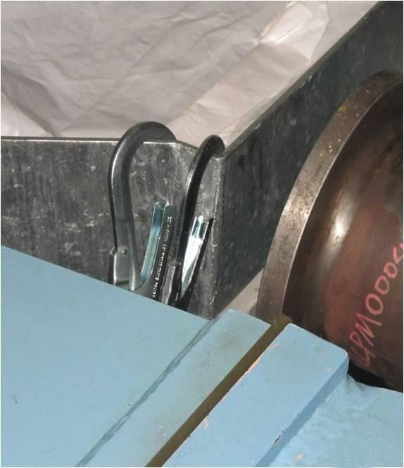 3、安全帶掛在踢腳板上,大鉤不閉合。