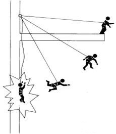 掛點選用: 掛點必須固定與可靠,掛點應(yīng)當能夠承受22KN的力,可選用建筑物的鋼梁、專設(shè)掛點、腳手架鋼管等。
