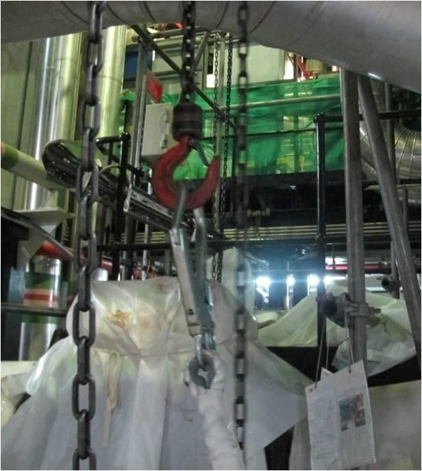 8、安全帶掛在手拉葫蘆的鏈條、小鉤上。