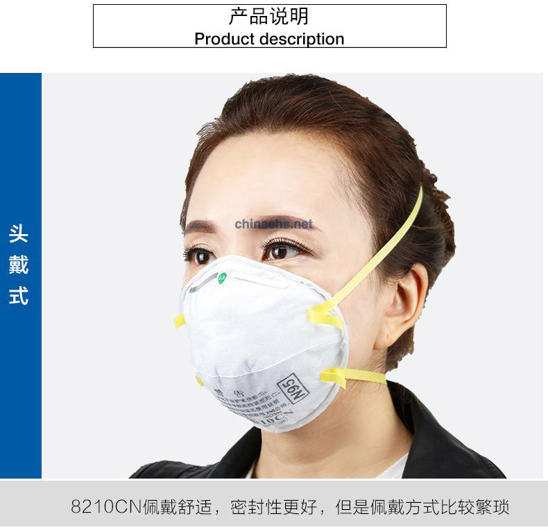 3M 8210 舒適版透氣防顆粒物N95防塵口罩設(shè)計合理、選材精良、重量輕,采用編織頭帶非橡膠性材料,對皮膚無過敏反應(yīng),與面部配合緊密性好,過濾效率達(dá)95%以上。