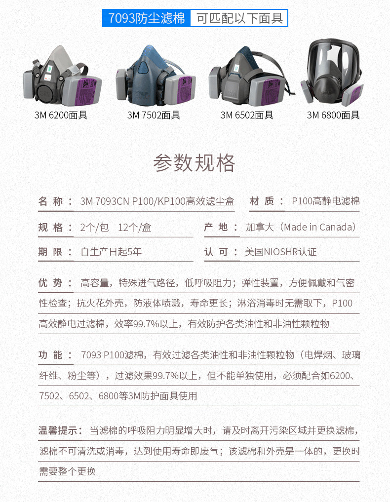 3M XH003897440 7093CN P100顆粒物濾塵盒(144個(gè)/箱)