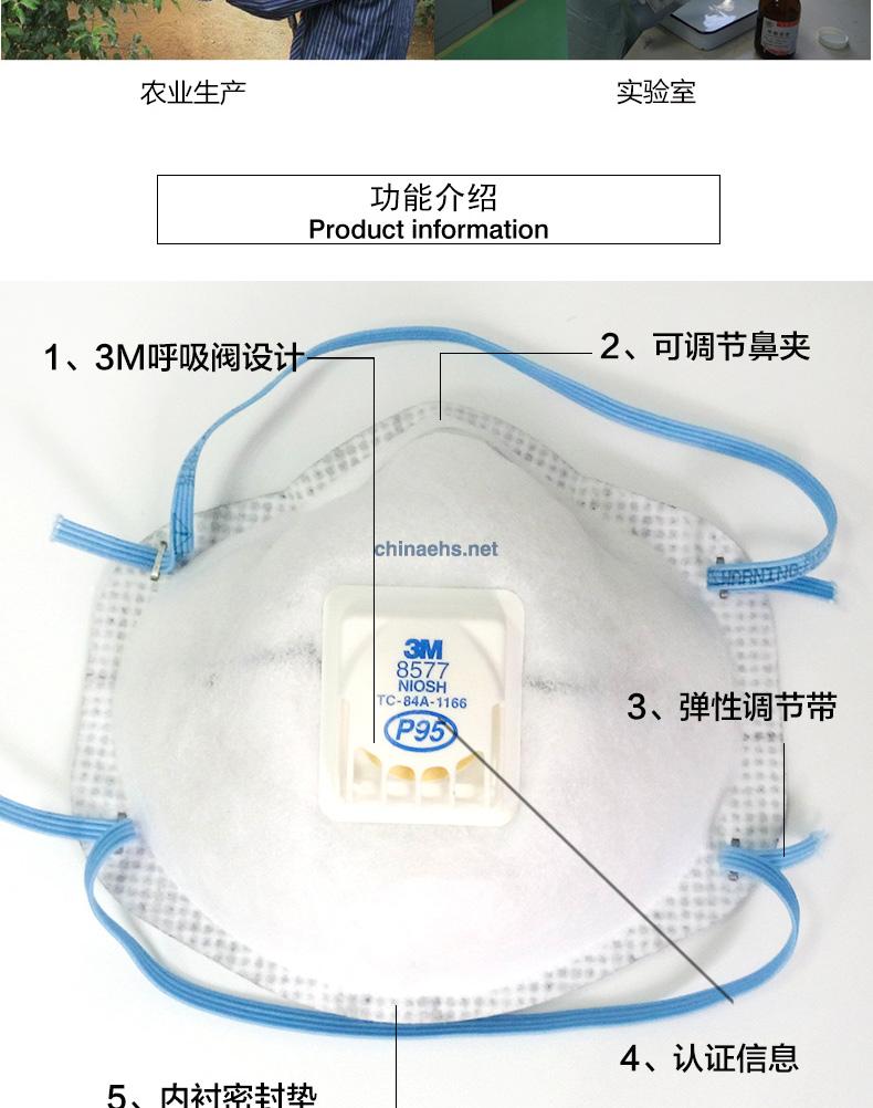產(chǎn)品名稱:3M口罩 8577 P95有機蒸氣異味及顆粒物防護口罩
